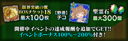 | 限界突破の翼 BOXチケット18 | 最大30個 | 最大60個 | 最大100個 |