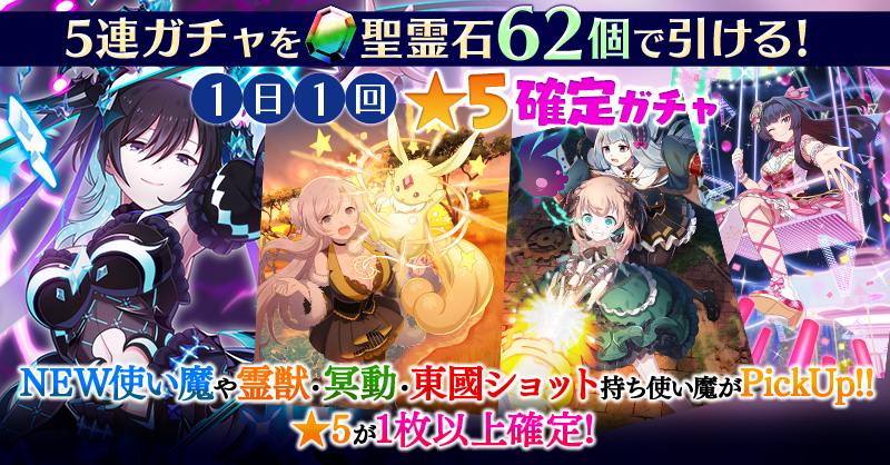 【一部NEW使い魔や霊獣・冥動・東國ショット持ち使い魔などがPickUP】1日1回★5確定ガチャ