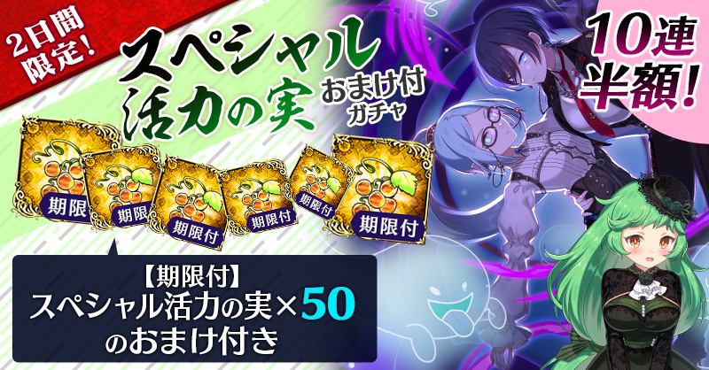 【2日間限定&10連半額!】スペシャル活力の実おまけ付ガチャ