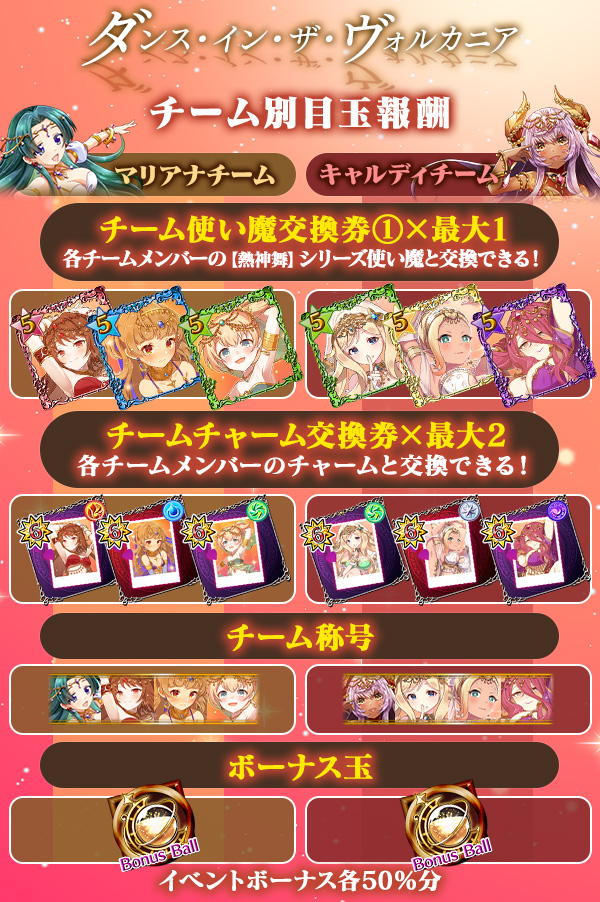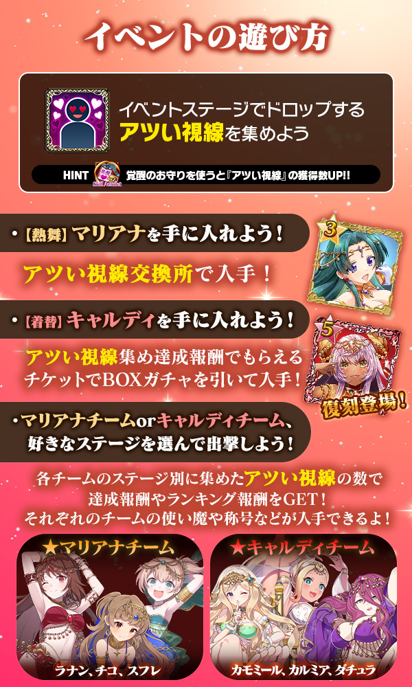 マリアナチーム・キャルディチームステージの「アツい視線」ドロップ量が増加!