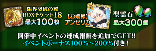 | 限界突破の翼 BOXチケット18 | 最大30個 | 最大60個 | 最大100個 |