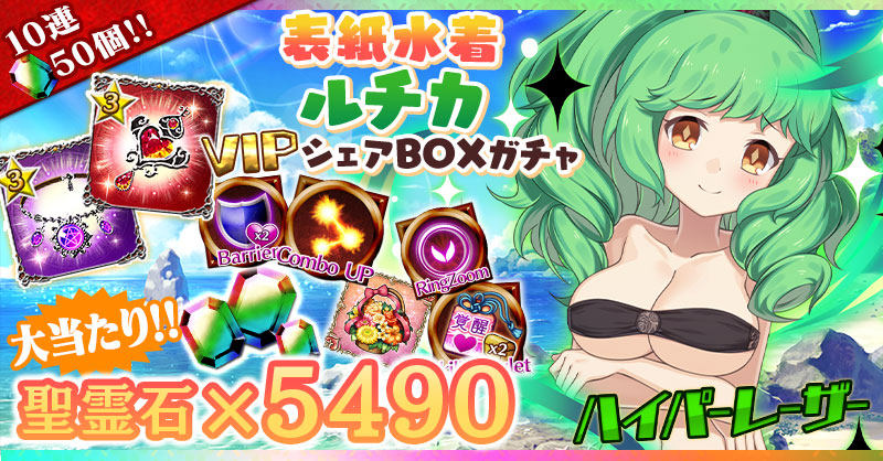 【VIPシェアBOXガチャも登場!『聖霊石×5490』が当たるチャンス!】表紙水着ルチカシェアBOXガチャ