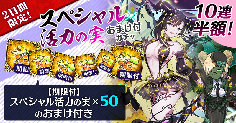 【2日間限定&10連半額!】スペシャル活力の実おまけ付ガチャ