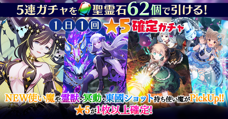 【一部NEW使い魔や霊獣・冥動・東國ショット持ち使い魔などがPickUP】1日1回★5確定ガチャ