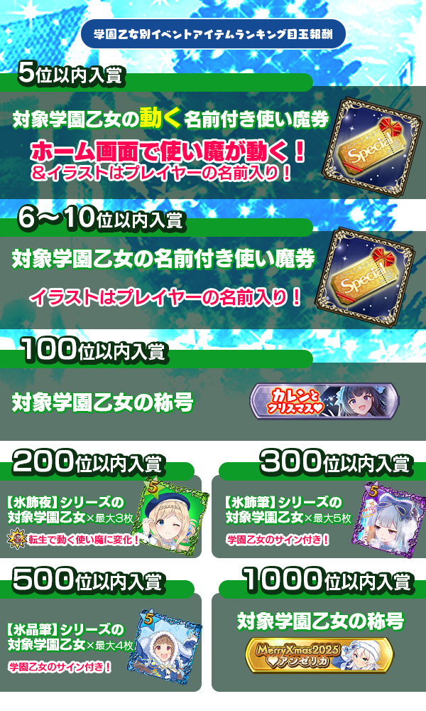 学園乙女別イベントアイテムランキング入賞でGET!! | ||