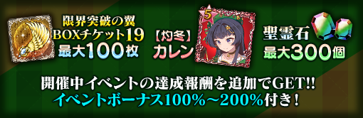 | 限界突破の翼 BOXチケット19 | 最大30個 | 最大60個 | 最大100個 |