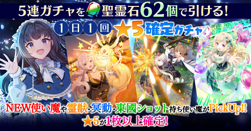 【一部NEW使い魔や霊獣・冥動・東國ショット持ち使い魔などがPickUP】1日1回★5確定ガチャ