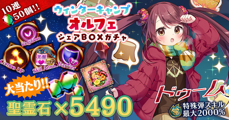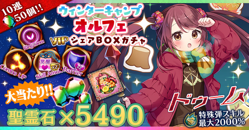 【VIPシェアBOXガチャも登場!『聖霊石×5490』が当たるチャンス!】ウィンターキャンプオルフェシェアBOXガチャ