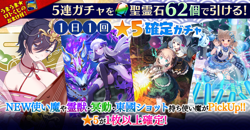 【一部NEW使い魔や霊獣・冥動・東國ショット持ち使い魔などがPickUP】1日1回★5確定ガチャ