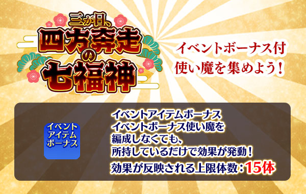 年末年始イベント【三が日、四方奔走の七福神】ボーナス一覧