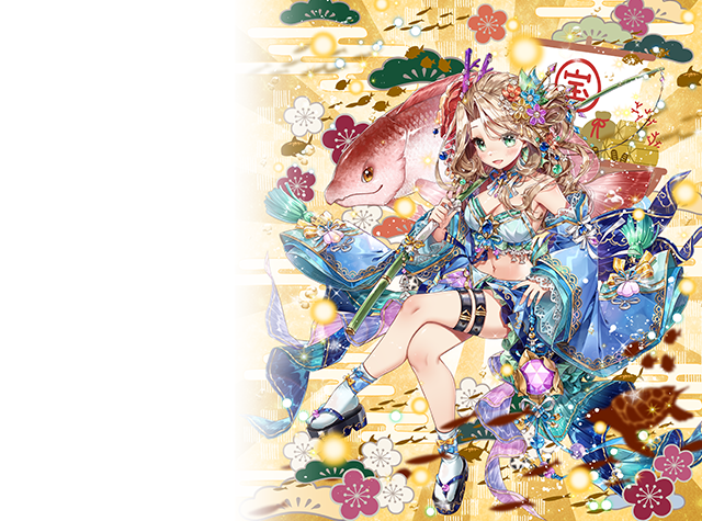 東の国で正月を祝う福食屋台祭りを開き、多くの客を呼び込むディゾナンス。商売繁盛を体現し、恵比寿もかくやという程の満面の笑みを見せる。