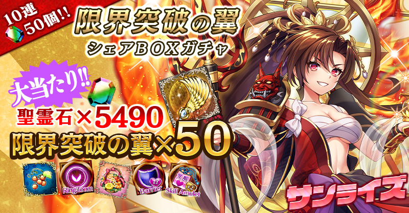 【『聖霊石×5490』『限界突破の翼×50』が当たるチャンス!】限界突破の翼シェアBOXガチャ