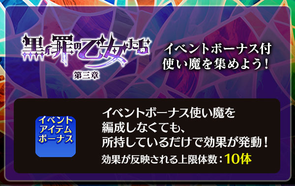 - 出現する使い魔および出現確率、注意事項については、ガチャページの「提供割合」にてご確認ください。