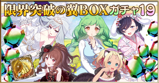 限界突破の翼、使い魔、聖霊石のいずれかが必ず当たる「限界突破の翼BOXガチャ19」を引くことができるガチャチケットです。