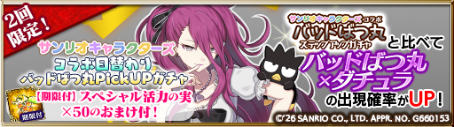 【サンリオキャラクターズコラボキャラが日替わりで登場!】日替わりPickUPガチャ