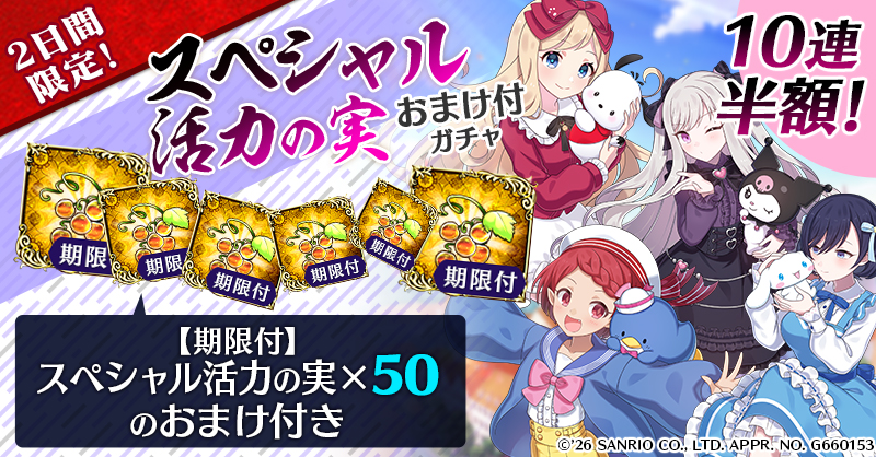 【2日間限定&10連半額!】スペシャル活力の実おまけ付ガチャ