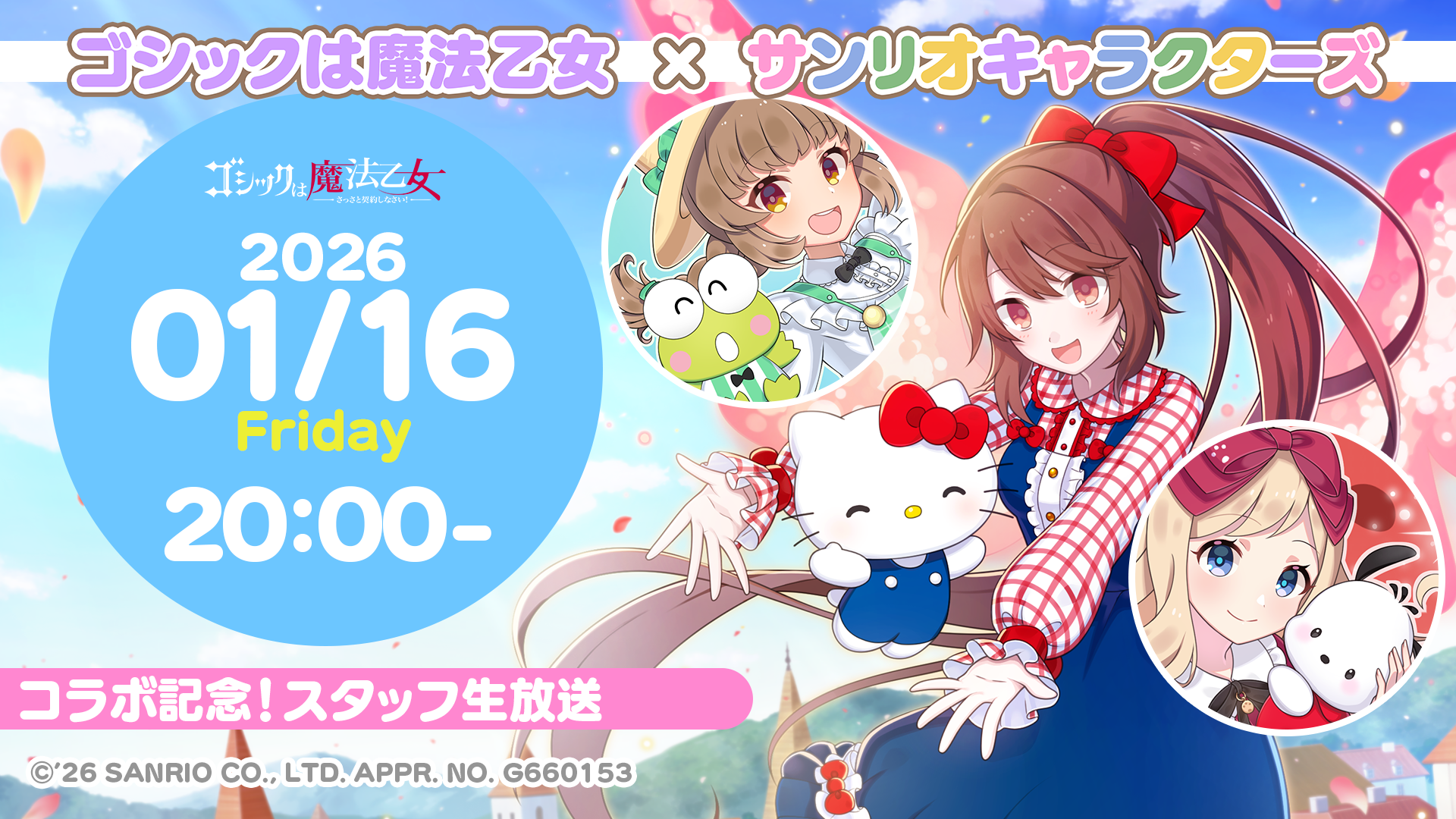 サンリオキャラクターズとのコラボを記念して、1/16(金)20:00より「ゴシックは魔法乙女」スタッフによる生放送を実施します!