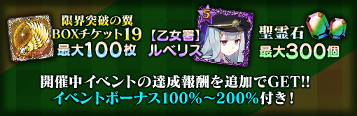 | 限界突破の翼 BOXチケット19 | 最大30個 | 最大60個 | 最大100個 |