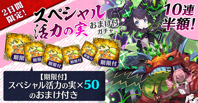 【2日間限定&10連半額!】スペシャル活力の実おまけ付ガチャ