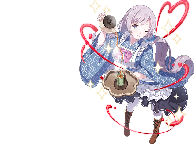 和風カフェの店員となって働くプルメリア。給仕係として働くだけではなく、お店で出しているメニューの中身にも、興味があるようだ。