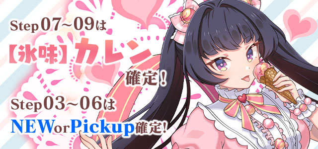 - ステップアップガチャは、Step数によってガチャの提供内容が変化します。 Step数の上昇により必ずしも提供内容がより良い内容に変化することを保証するわけではありません。