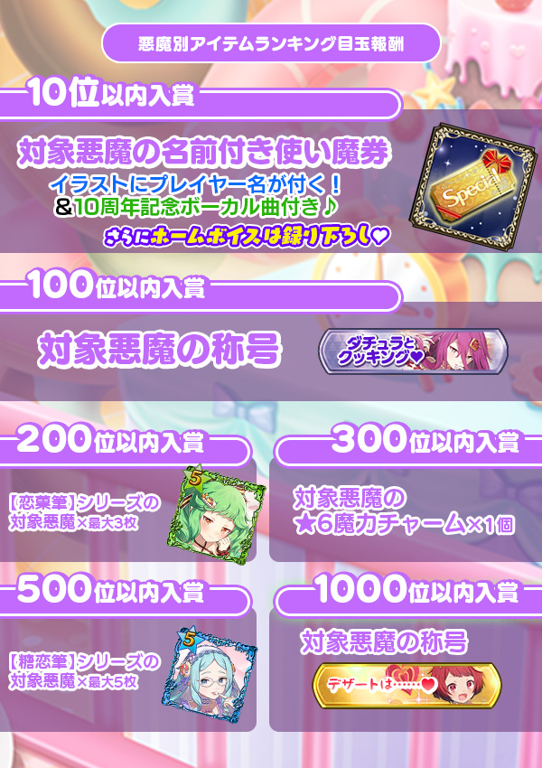 悪魔別イベントアイテムランキング入賞でGET!! | ||