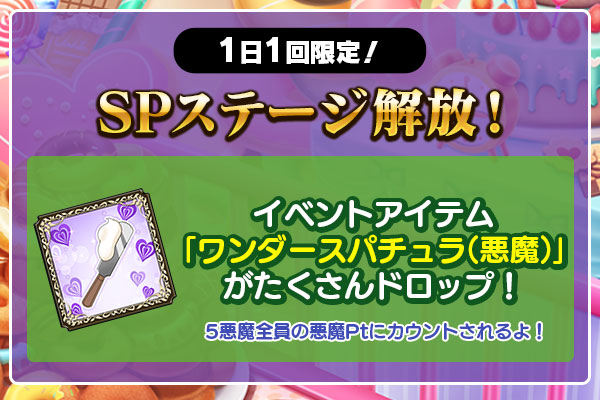 | 2話解放条件 | ワンダースパチュラ(悪魔)を500個獲得 |