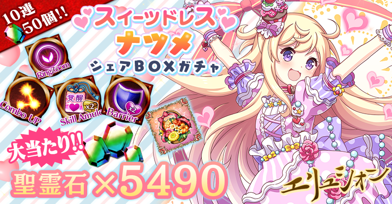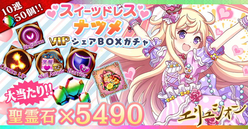 【VIPシェアBOXガチャも登場!『聖霊石×5490』が当たるチャンス!】スイーツドレスナツメシェアBOXガチャ