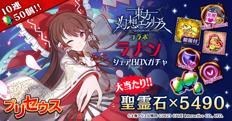 【『聖霊石×5490』が当たるチャンス!】東方幻想エクリプスコラボラナンシェアBOXガチャ