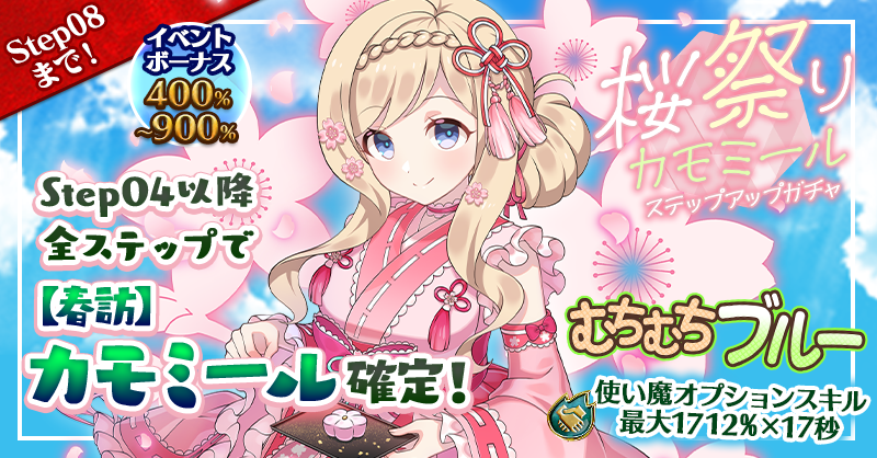 【Step04以降全ステップでイベントボーナス+400%~900%持ち【春訪】カモミール確定!】桜祭りカモミールステップアップガチャ