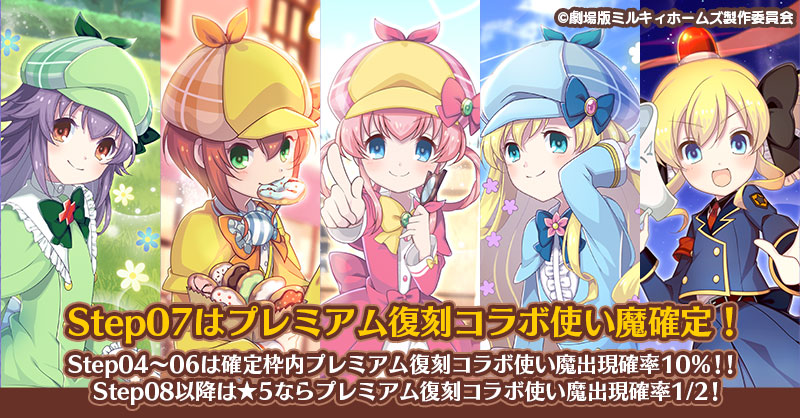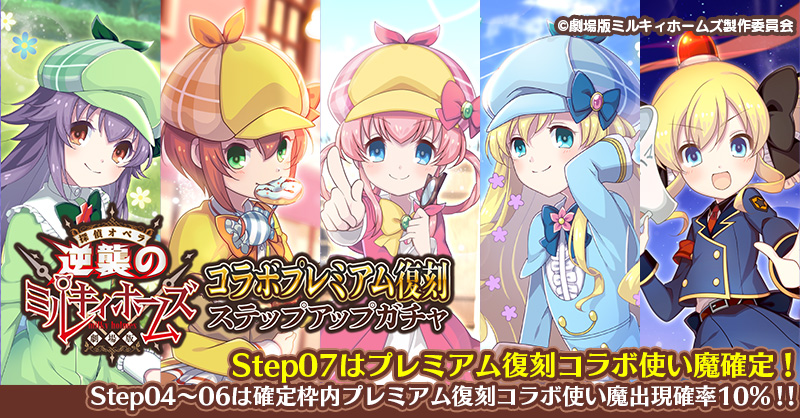 【ミルキィホームズのキャラクターがプレミアム復刻!】ミルキィホームズコラボプレミアム復刻ステップアップガチャ