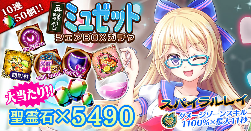 【『聖霊石×5490』が当たるチャンス!】再験習ミュゼットシェアBOXガチャ