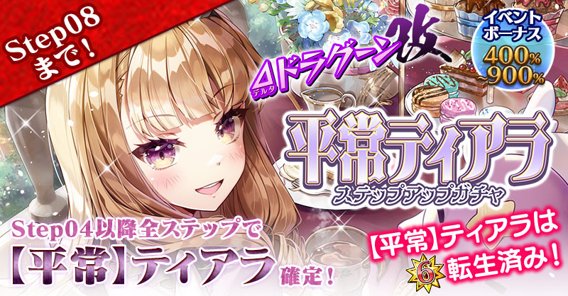 【Step04以降全ステップでイベントボーナス+400%~900%持ち【平常】ティアラ確定!】平常ティアラステップアップガチャ