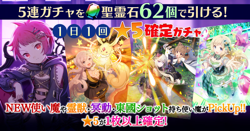 【一部NEW使い魔や霊獣・冥動・東國ショット持ち使い魔などがPickUP】1日1回★5確定ガチャ